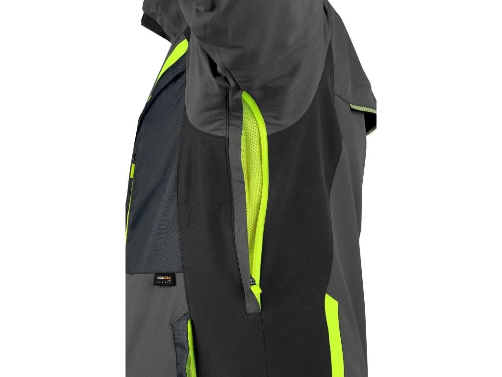 Namáhané časti sú zosilnené materiálom CORDURA®, čo výrazne predlžuje životnosť odevu. Ventilačné panely na chrbte a pod rukávmi podporujú cirkuláciu vzduchu. Praktické vrecká vrátane skrytých náprsných vreciek a vrecka na pero zvyšujú komfort pri práci.