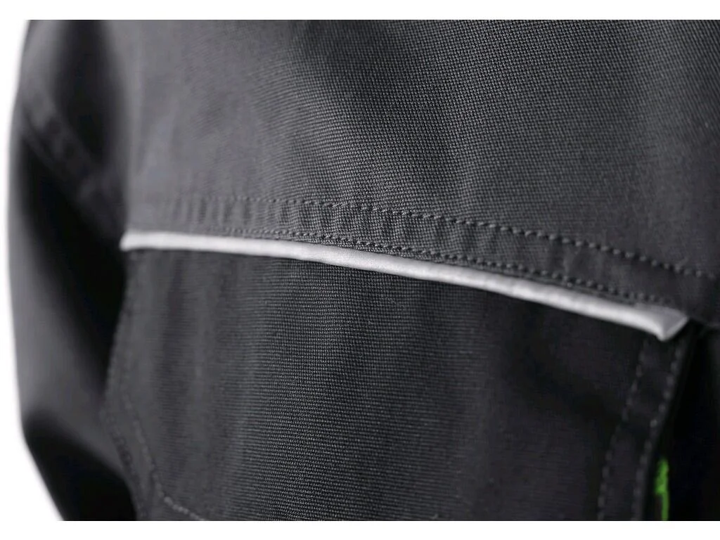 Kryté zapínanie na zips a druky zvyšuje ochranu pred nečistotami. Praktické multifunkčné náprsné vrecká, bočné vrecká na zips a nastaviteľné manžety zaručujú funkčnosť pri práci. Regulovateľný pás zabezpečuje lepšie prispôsobenie postave a reflexné prvky zlepšujú viditeľnosť.