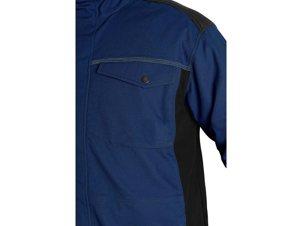 Praktické náprsné a bočné vrecká na zips, rukávové vrecko aj nastaviteľné manžety poskytujú funkčnosť pri práci. Regulovateľný pás a odvetrávanie na chrbte zvyšujú komfort počas celodenného nosenia. Reflexné prvky zlepšujú viditeľnosť v zhoršených svetelných podmienkach.