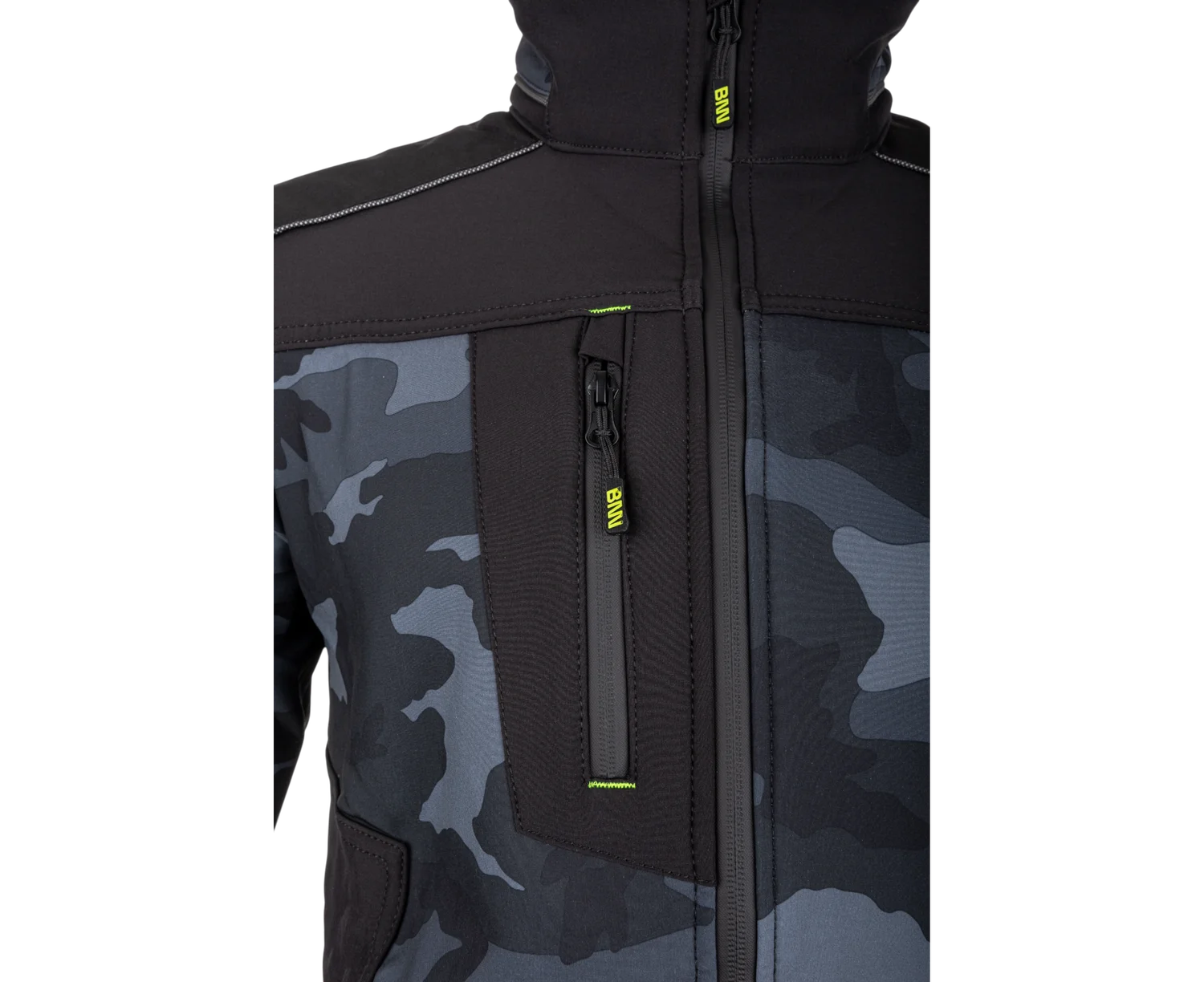 Softshellová bunda CAMOS – maskáčová, vetruodolná, zateplená
