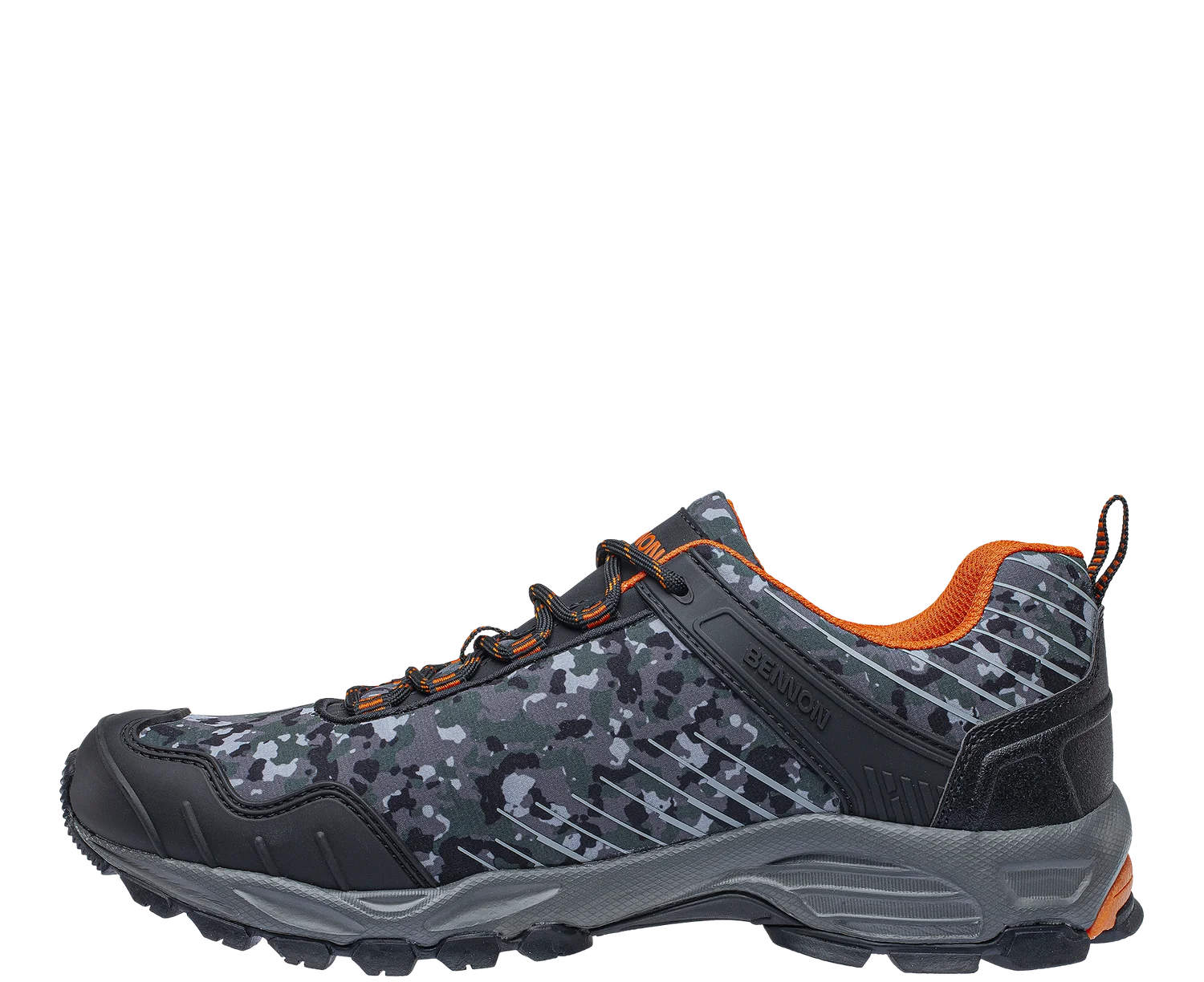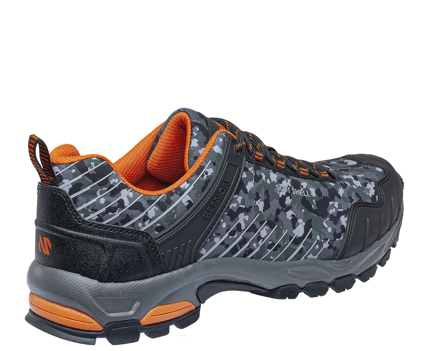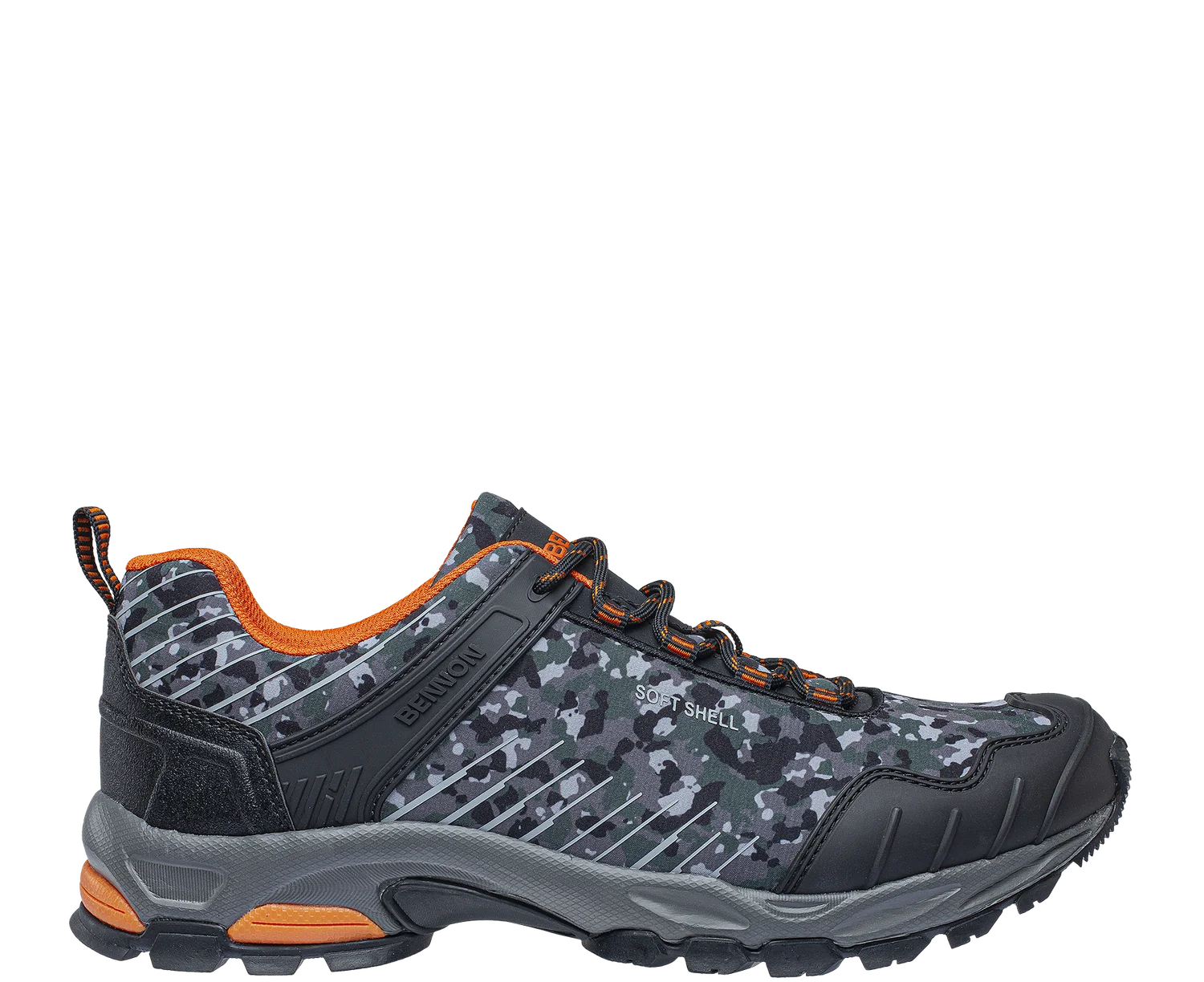 Ľahká outdoorová poltopánka s maskáčovým vzorom je ideálnou voľbou na turistiku, šport aj voľný čas. Softshellový zvršok je priedušný a pohodlný, zatiaľ čo protiokopová gumová špica chráni obuv pred poškodením v teréne.