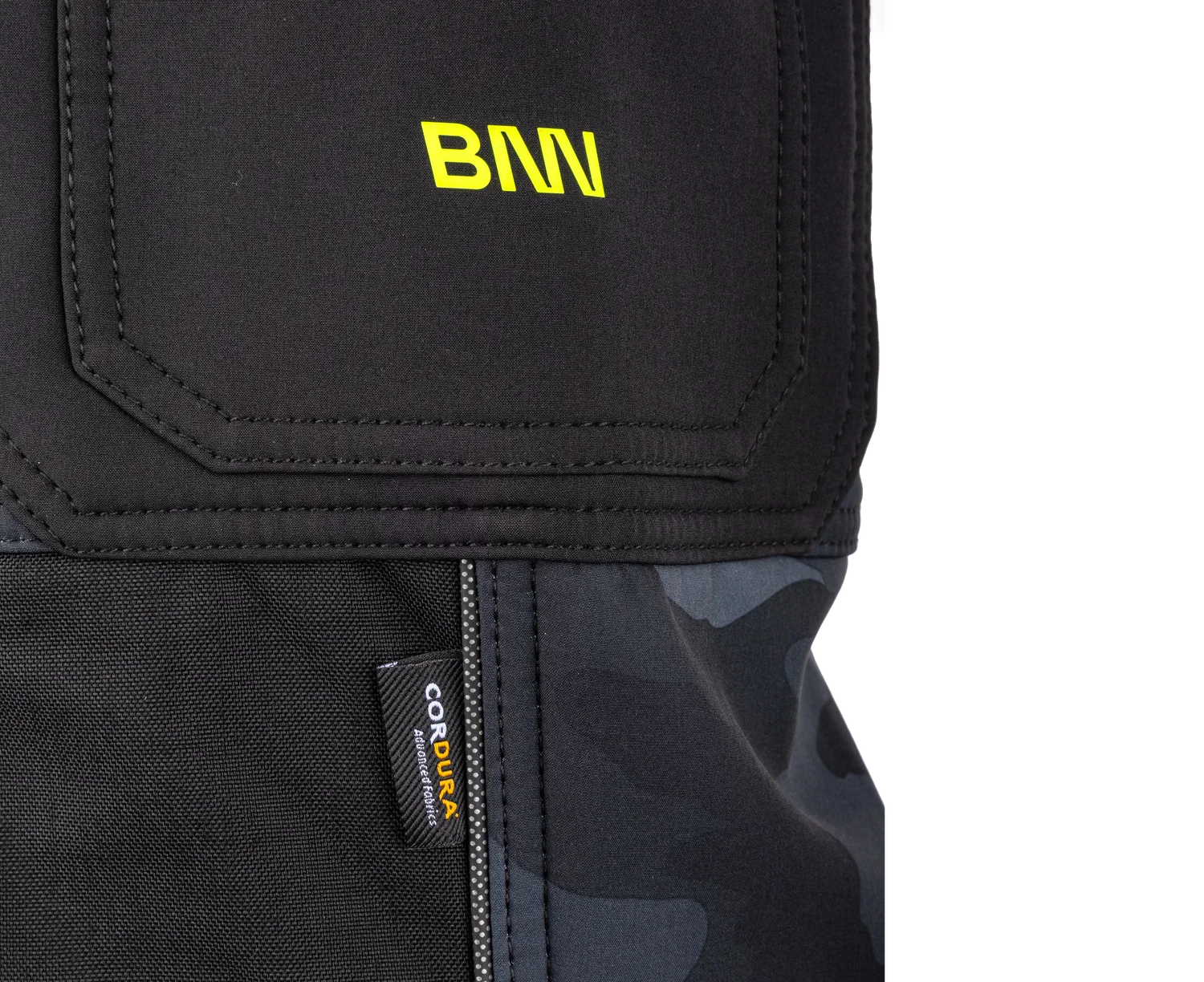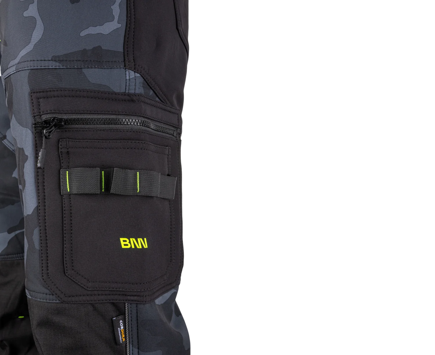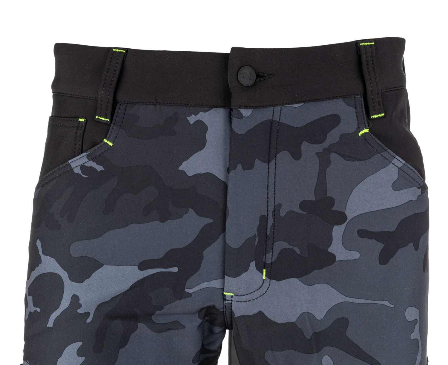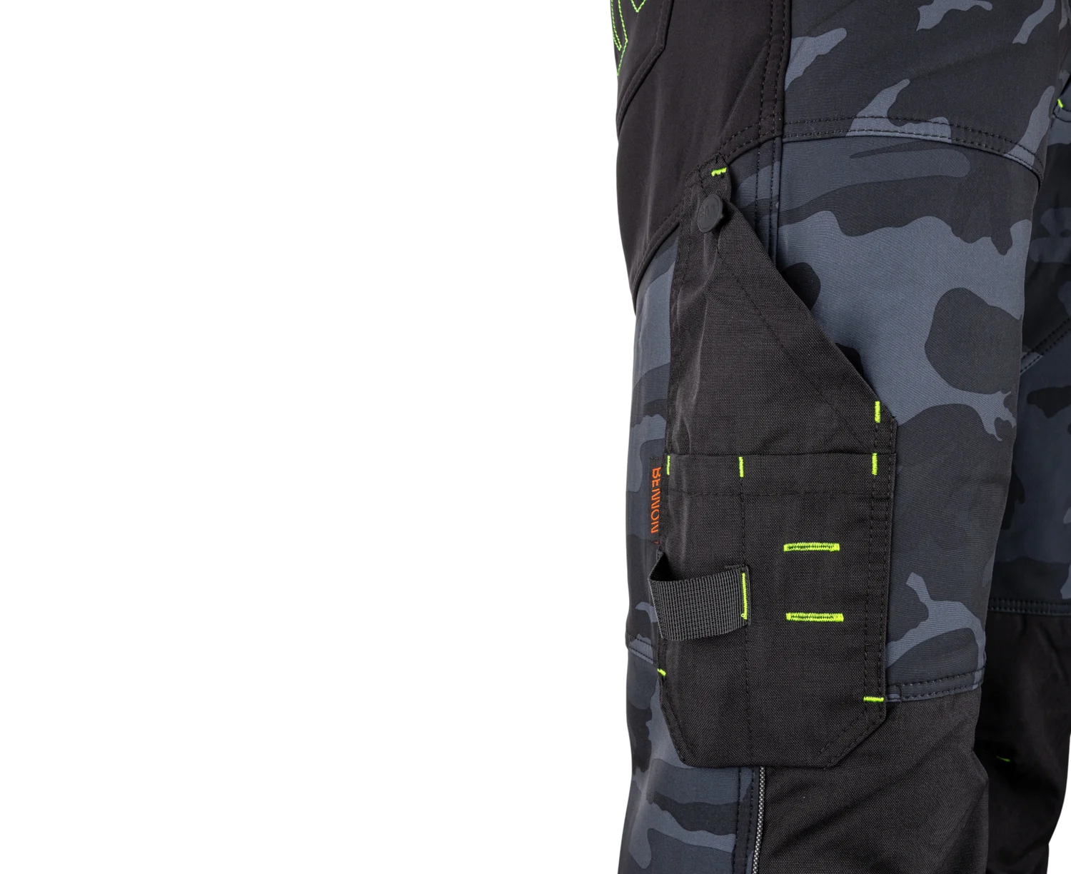 Zateplené softshellové pracovné nohavice s paropriepustnosťou 15 000 g/m²/24 h ponúkajú komfort aj v chladnom počasí. Zosilnené kolená z Cordura 500D a vrecká na kolenné výstelky zvyšujú odolnosť aj pohodlie pri práci. Vodeodolný materiál, maskáčový dizajn a reflexné prvky zabezpečujú funkčnosť aj bezpečnosť.