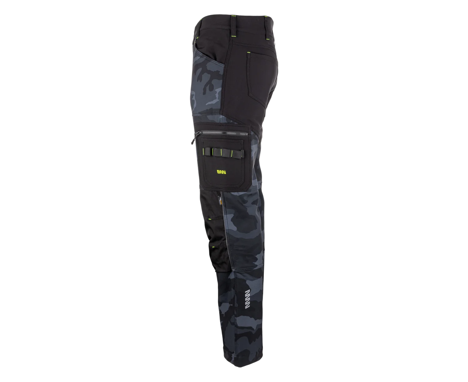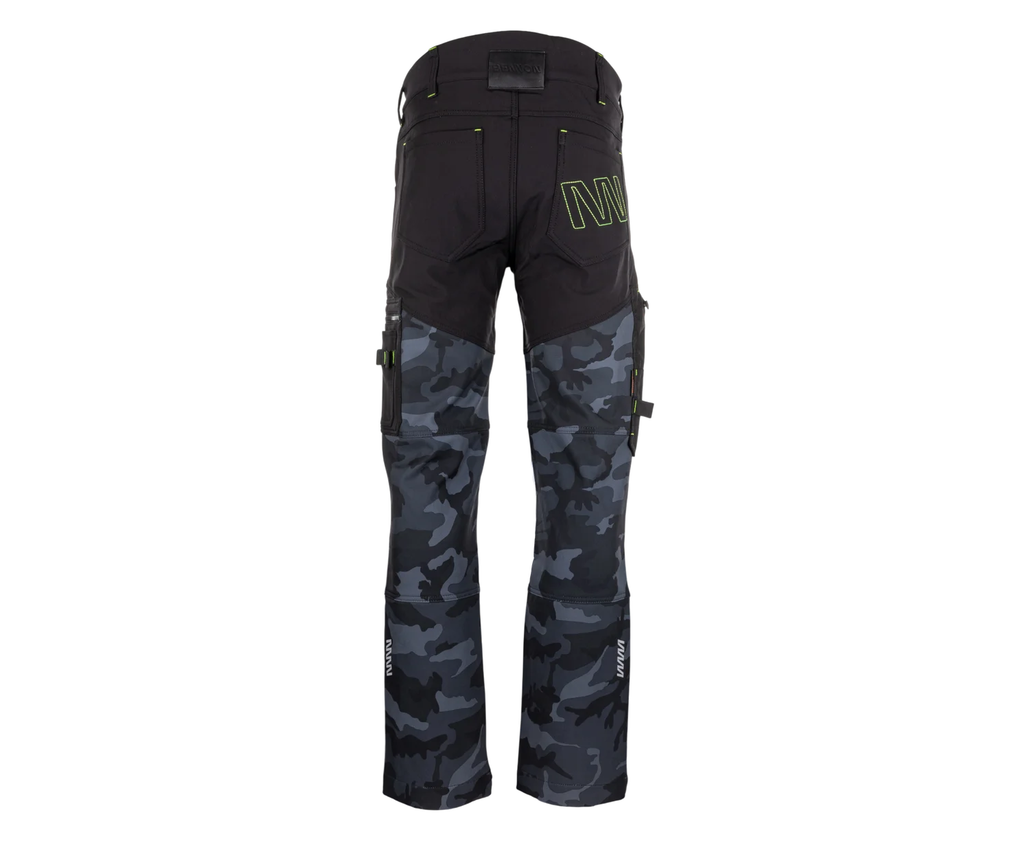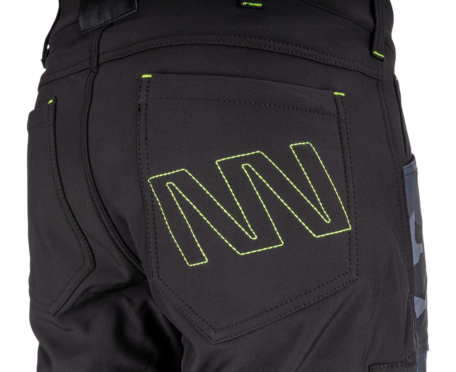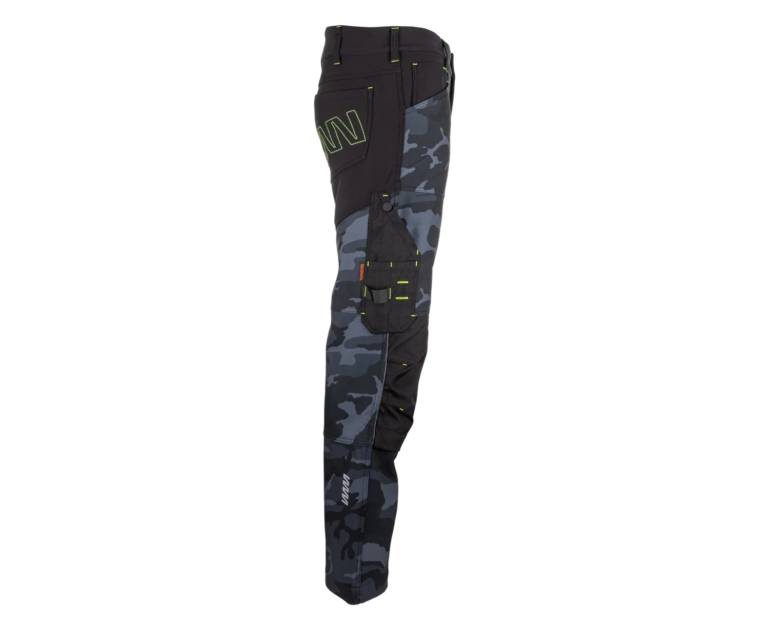 Zateplené softshellové pracovné nohavice s paropriepustnosťou 15 000 g/m²/24 h ponúkajú komfort aj v chladnom počasí. Zosilnené kolená z Cordura 500D a vrecká na kolenné výstelky zvyšujú odolnosť aj pohodlie pri práci. Vodeodolný materiál, maskáčový dizajn a reflexné prvky zabezpečujú funkčnosť aj bezpečnosť.