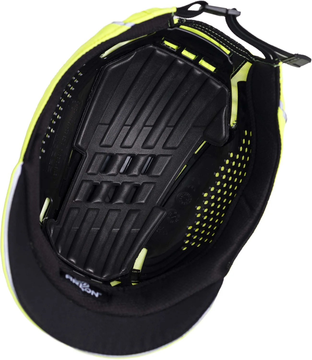 Vnútorná ochranná škrupina z ABS plastu chráni hlavu pred nárazmi zhora, zatiaľ čo ľahká polyesterová tkanina z mikrovlákien pomáha odvádzať vlhkosť a zlepšuje cirkuláciu vzduchu. Ventilačná sieťovina v hornej časti zvyšuje priedušnosť a znižuje prehrievanie hlavy pri práci.