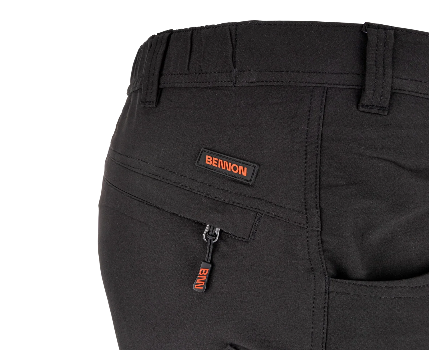 Ľahký a pružný materiál z nylonu a elastanu zabezpečuje maximálnu voľnosť pohybu a vysokú odolnosť. Trojité prešitie v namáhaných miestach zvyšuje životnosť nohavíc, zatiaľ čo elastický pás sa prispôsobí postave. Praktické zipsové vrecká a kovová spona na kľúče zvyšujú funkčnosť. Reflexné prvky zlepšujú viditeľnosť pri zhoršených svetelných podmienkach.
