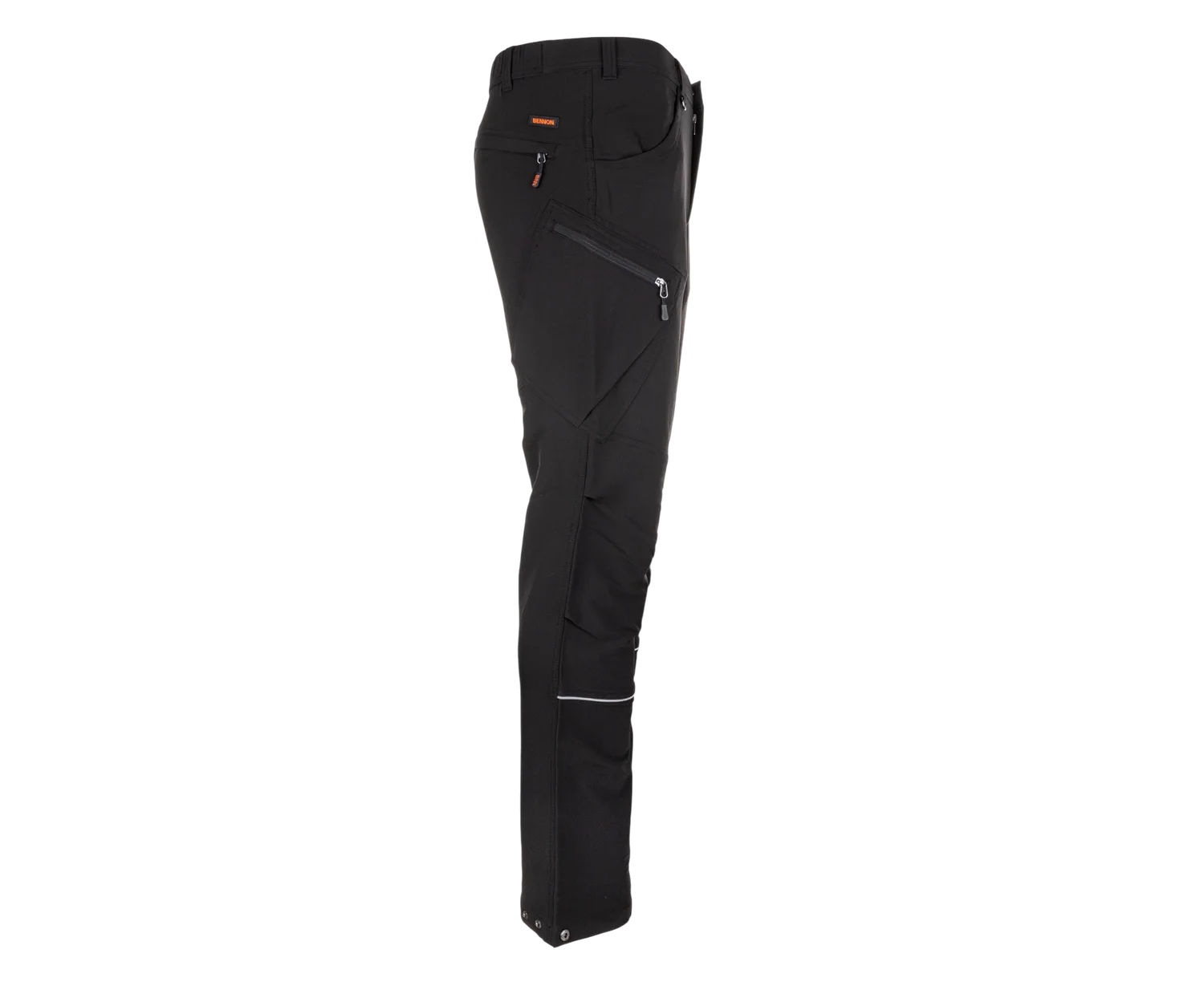 Zosilnené trojité prešitie v namáhaných miestach zvyšuje odolnosť pri náročnom používaní. Praktické rozloženie 6 vreciek, vrátane zipsových cargo vreciek, ponúka dostatok priestoru na výbavu. Reflexné prvky na nohaviciach zlepšujú viditeľnosť v zhoršených svetelných podmienkach.