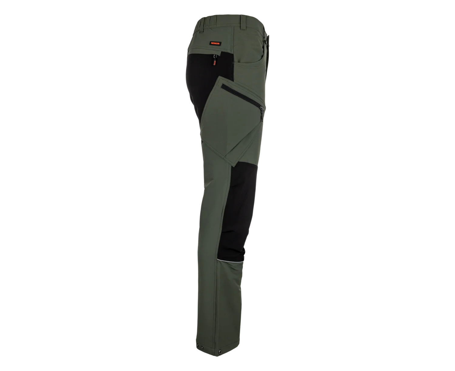 Zosilnené trojité prešitie v namáhaných miestach zvyšuje odolnosť pri náročnom používaní. Praktické rozloženie 6 vreciek, vrátane zipsových cargo vreciek, ponúka dostatok priestoru na výbavu. Reflexné prvky na nohaviciach zlepšujú viditeľnosť v zhoršených svetelných podmienkach.
