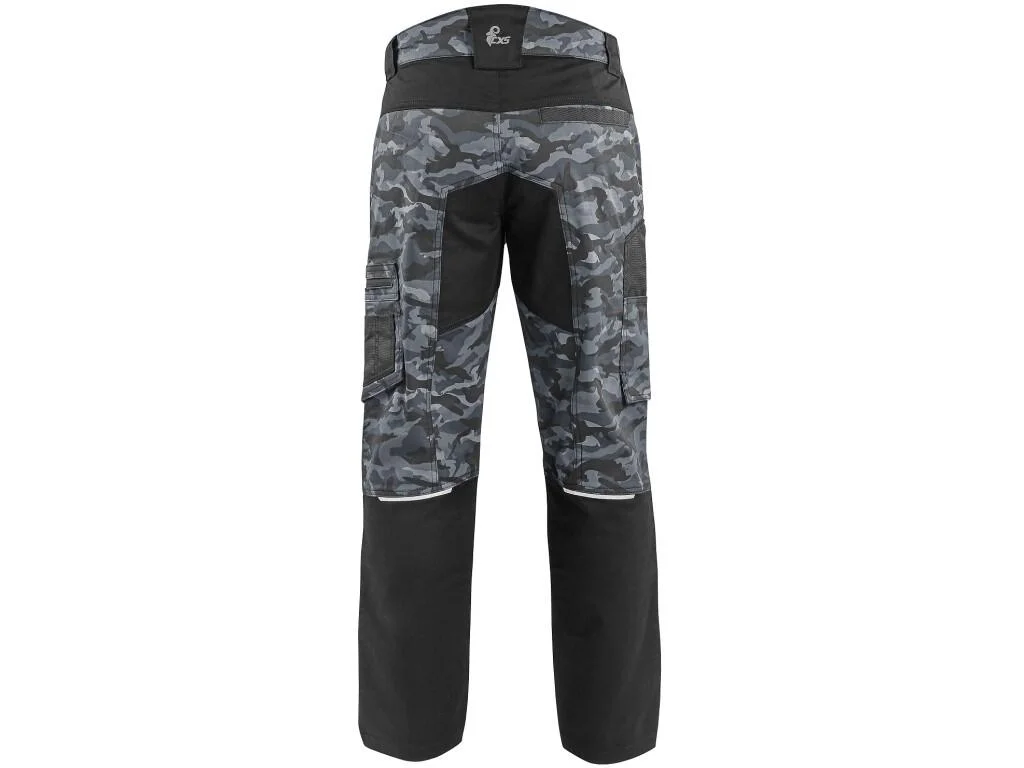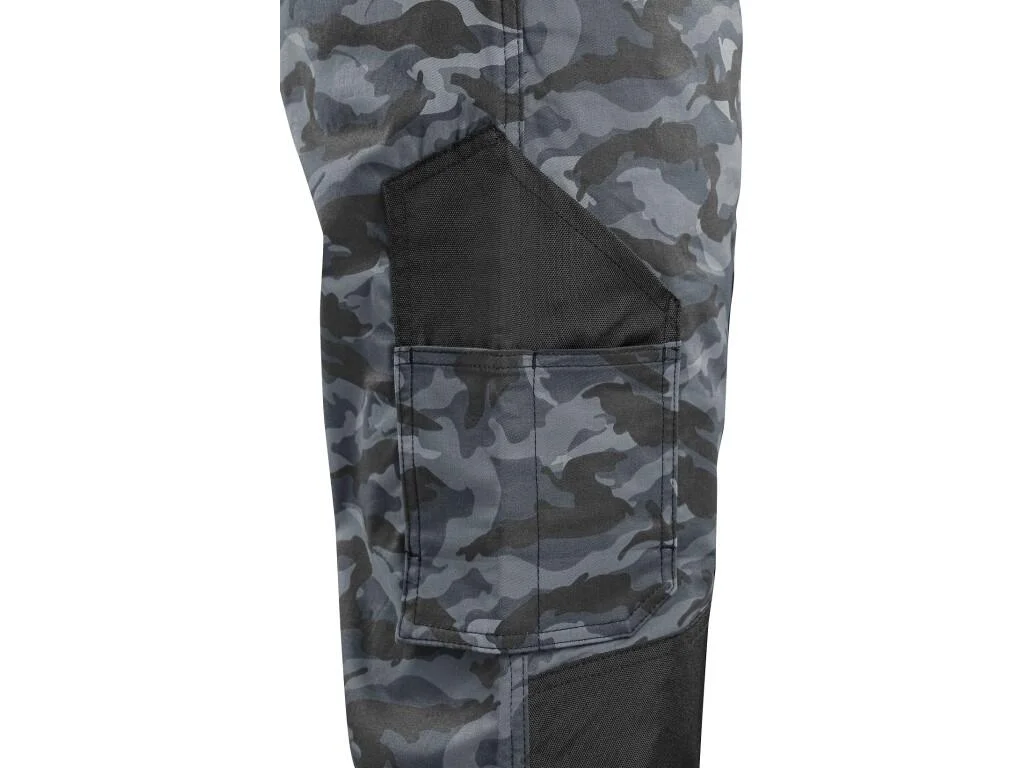 Odolné pánske pracovné nohavice CXS SOLIS FLEX z materiálu Move & Flex zabezpečujú maximálnu pružnosť a komfort počas celodennej práce. Moderný maskáčový dizajn v kombinácii s čiernymi detailmi pôsobí profesionálne aj dynamicky.