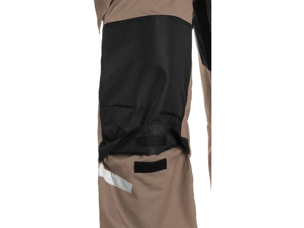Pánske pracovné nohavice CXS STRETCH v béžovo-čiernom prevedení ponúkajú maximálne pohodlie a voľnosť pohybu vďaka pružnej strečovej tkanine. Zosilnené kolená z odolného 600D polyesteru s možnosťou vloženia kolenných výstuh zvyšujú ochranu aj životnosť nohavíc pri náročnej práci.