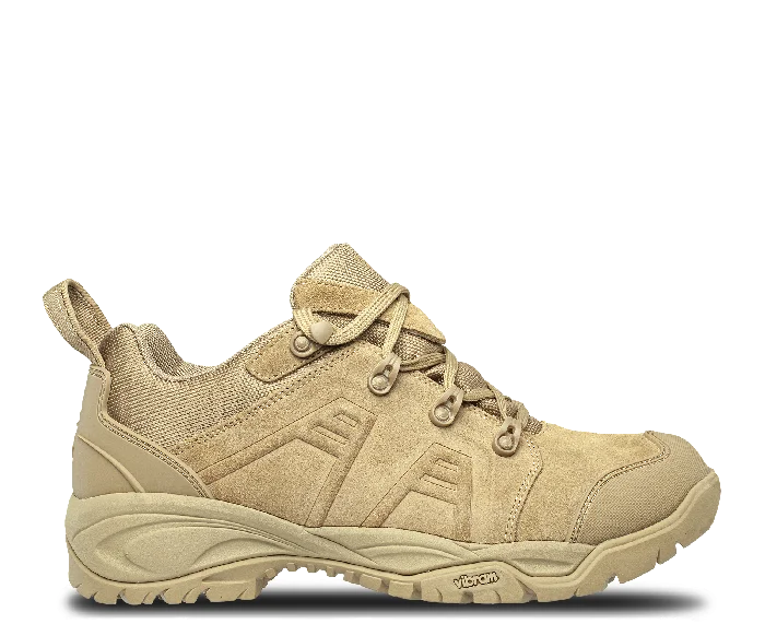 Odolná taktická poltopánka bez kovových súčastí určená na náročné pracovné aj outdoorové podmienky. Kombinácia hovädzej štiepenky a materiálu Cordura zabezpečuje vysokú odolnosť voči oderu, zatiaľ čo vodoodolná membrána REGI-TEX udržiava nohy v suchu. Podrážka Vibram poskytuje výbornú stabilitu, protišmykové vlastnosti a vysoký komfort aj pri dlhodobom nosení.