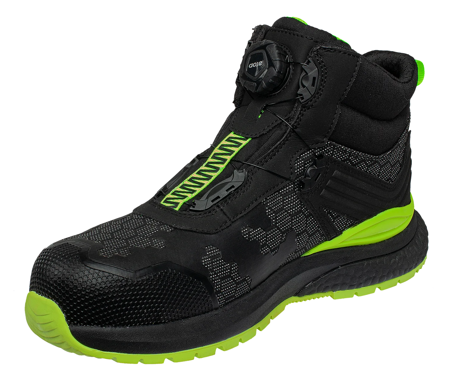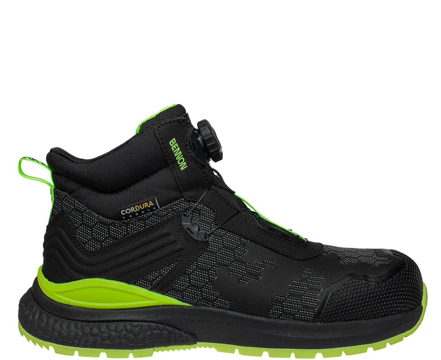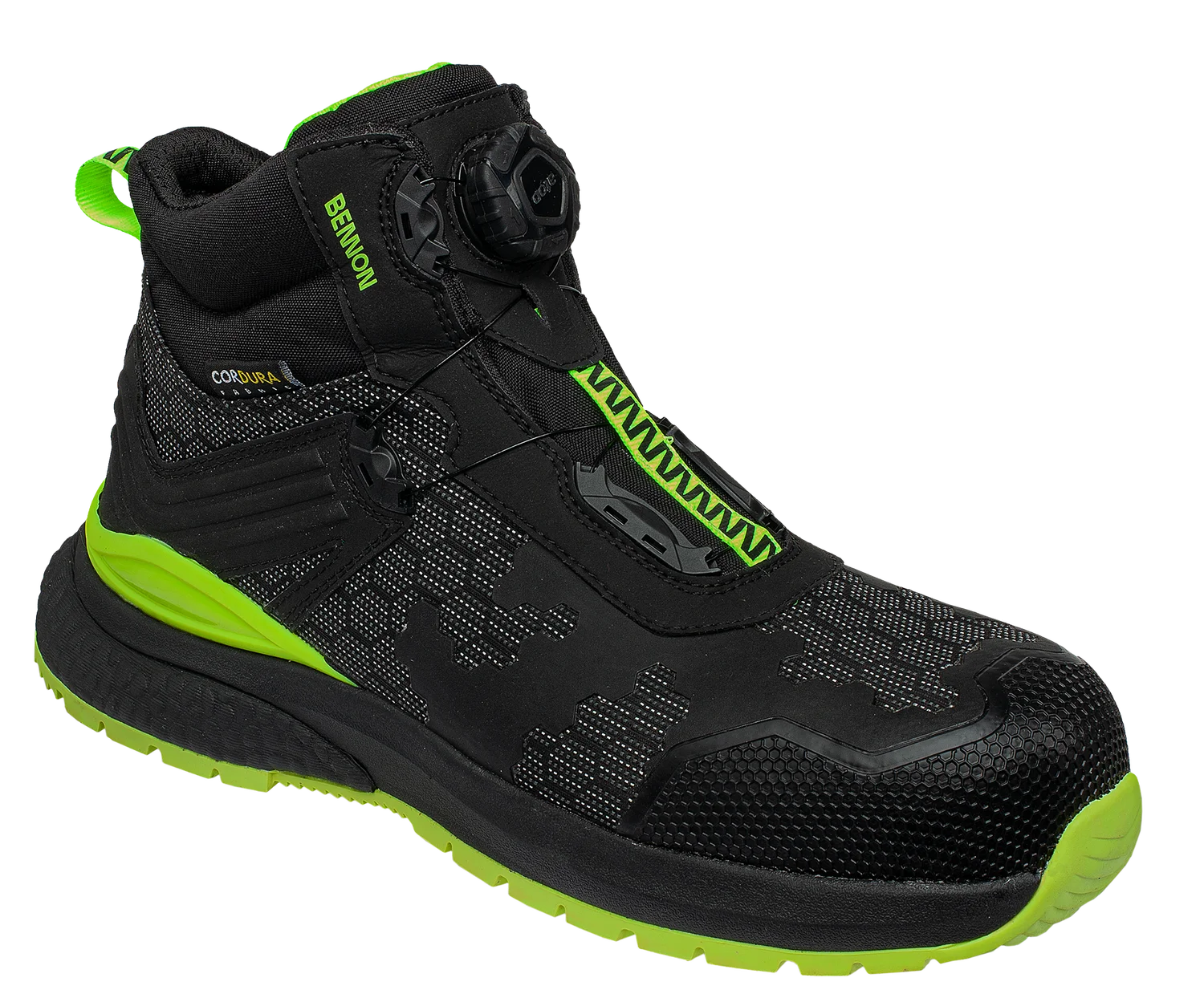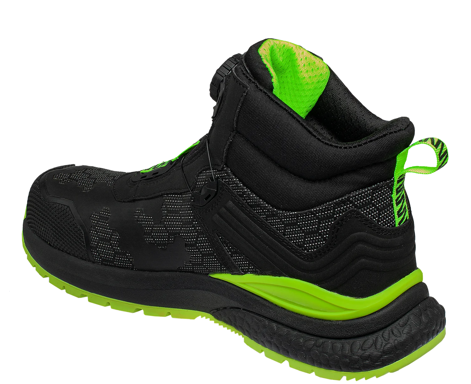 Veľkou výhodou je rýchly uzatvárací systém B-SPIN, ktorý umožňuje jednoduché a rýchle utiahnutie obuvi otočením kolieska. TPU spevnenie v oblasti päty a širšia podrážka v zadnej časti zabezpečujú lepšiu stabilitu pri chôdzi aj pri práci na pevnom povrchu.