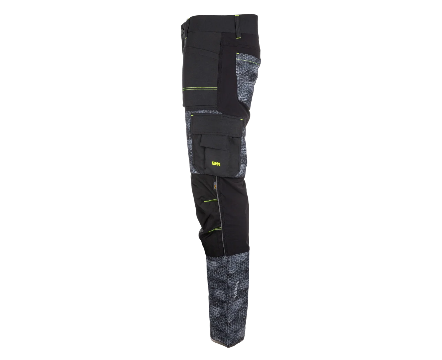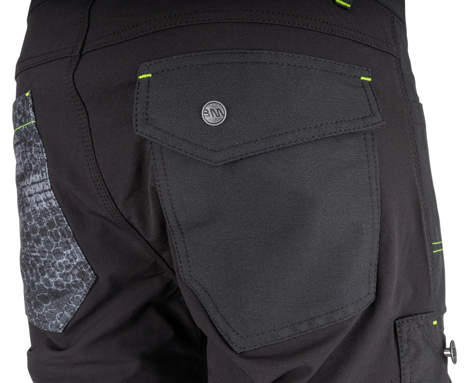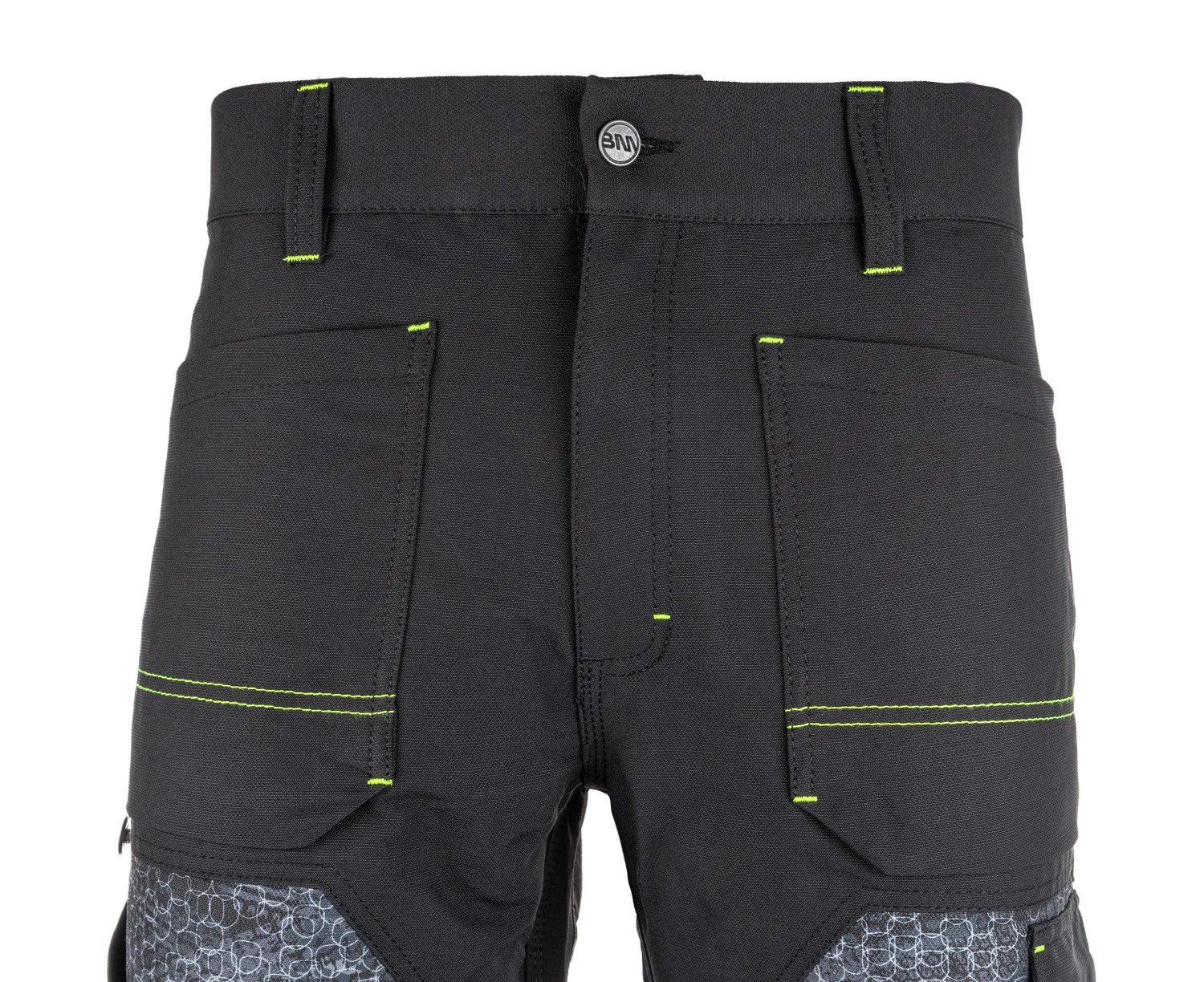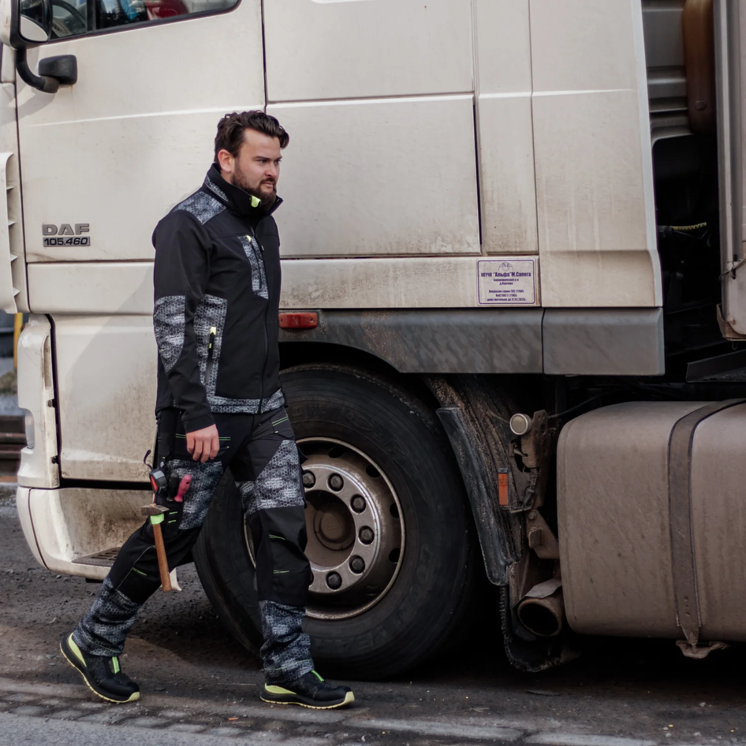 Pohodlné pánské strečové pracovní kalhoty s jemným maskáčovým vzorem • pevný odolný materiál, v oblasti sedu a rozkroku však velmi pružný zajišťující volnost při pohybových aktivitách • zvýšený pas zamezující odhalení bederní části při předklonu – omezení prochladnutí • namáhané části kolen a kapes jsou zpevněny materiálem Cordura 500D, což znamená, že se vyznačují vysokou pevností a odolností vůči oděru a jiným mechanickým poškozením • kapsy na šroubováky, hřebíky a kladivo, kapsa na skládací metr • kapsa na kolenní vycpávky zpříjemňující práci vkleče • poutka na zavěšení nářadí • vodoodpudivý zátěr • reflexní prvky na nohavicích pro vaši bezpečnost za tmy a šera • textilní štítek na jmenovku • nastavitelná délka nohavic (z vnitřní strany kalhot lze jednoduše odpárat prodlužující záhyb) • tento výrobek splňuje normu: EN ISO 13688:2013/A1:2021 Doporučené použití: práce ve vnitřních i venkovních prostorech