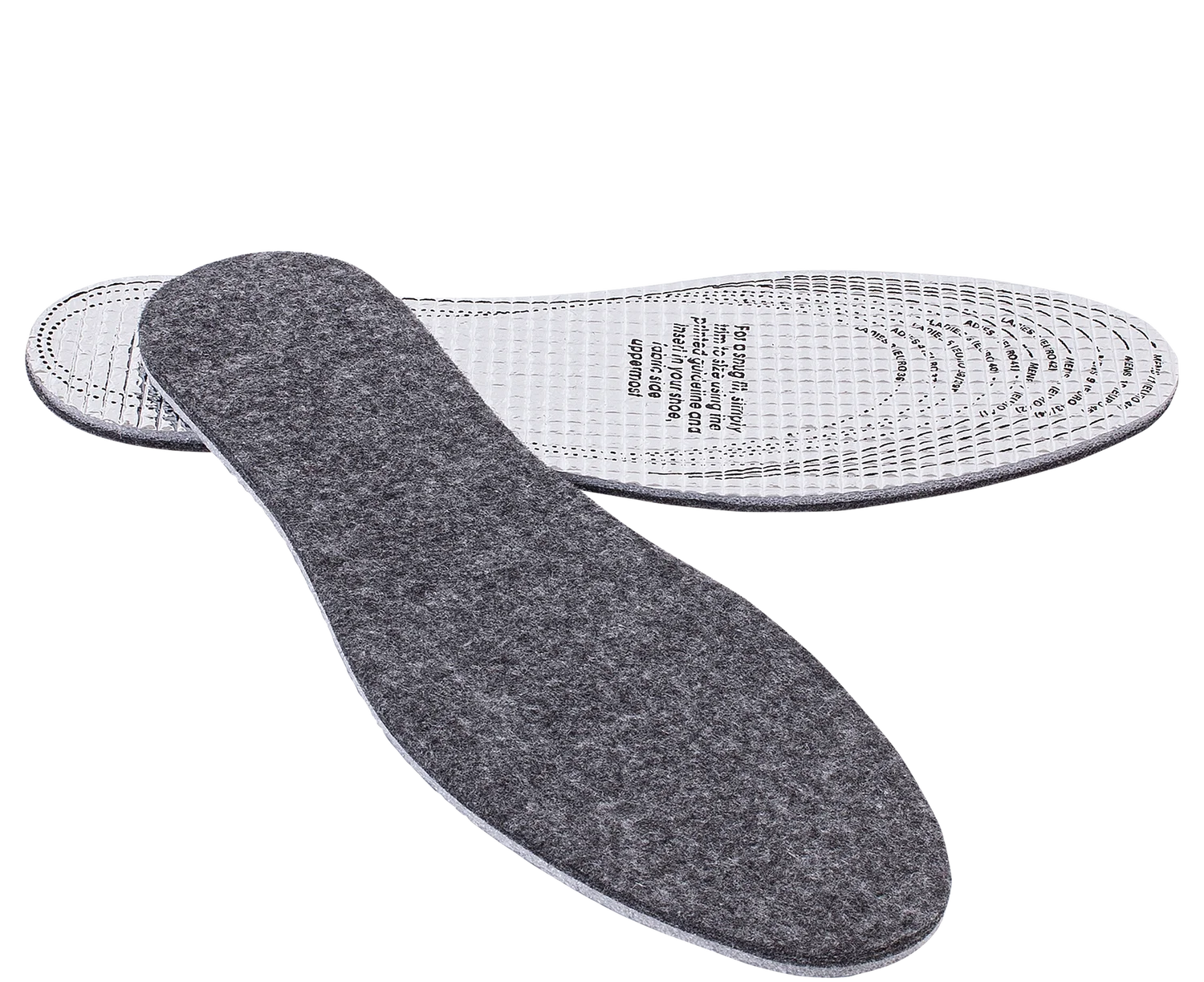 Praktická zimná stielka do obuvi s fleecovým plsteným povrchom je ideálnym riešením pre zvýšenie komfortu počas chladných dní. Mäkká fleecová plsť poskytuje príjemné teplo a pohodlie pri chôdzi, zatiaľ čo spodná vrstva z hliníkovej fólie zabezpečuje výbornú tepelnú izoláciu a chráni chodidlá pred prenikaním chladu od podrážky obuvi.