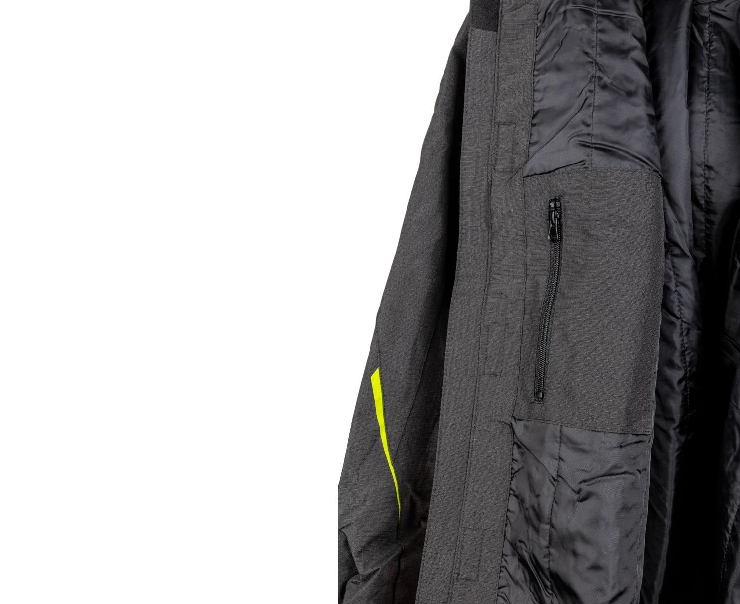 Bunda je vybavená tromi praktickými vreckami na zips, do ktorých môžete bezpečne uložiť mobil, doklady alebo pracovné pomôcky. Manžety rukávov sú nastaviteľné pomocou suchého zipsu, čo umožňuje lepšie prispôsobenie bundy a ochranu pred vetrom.