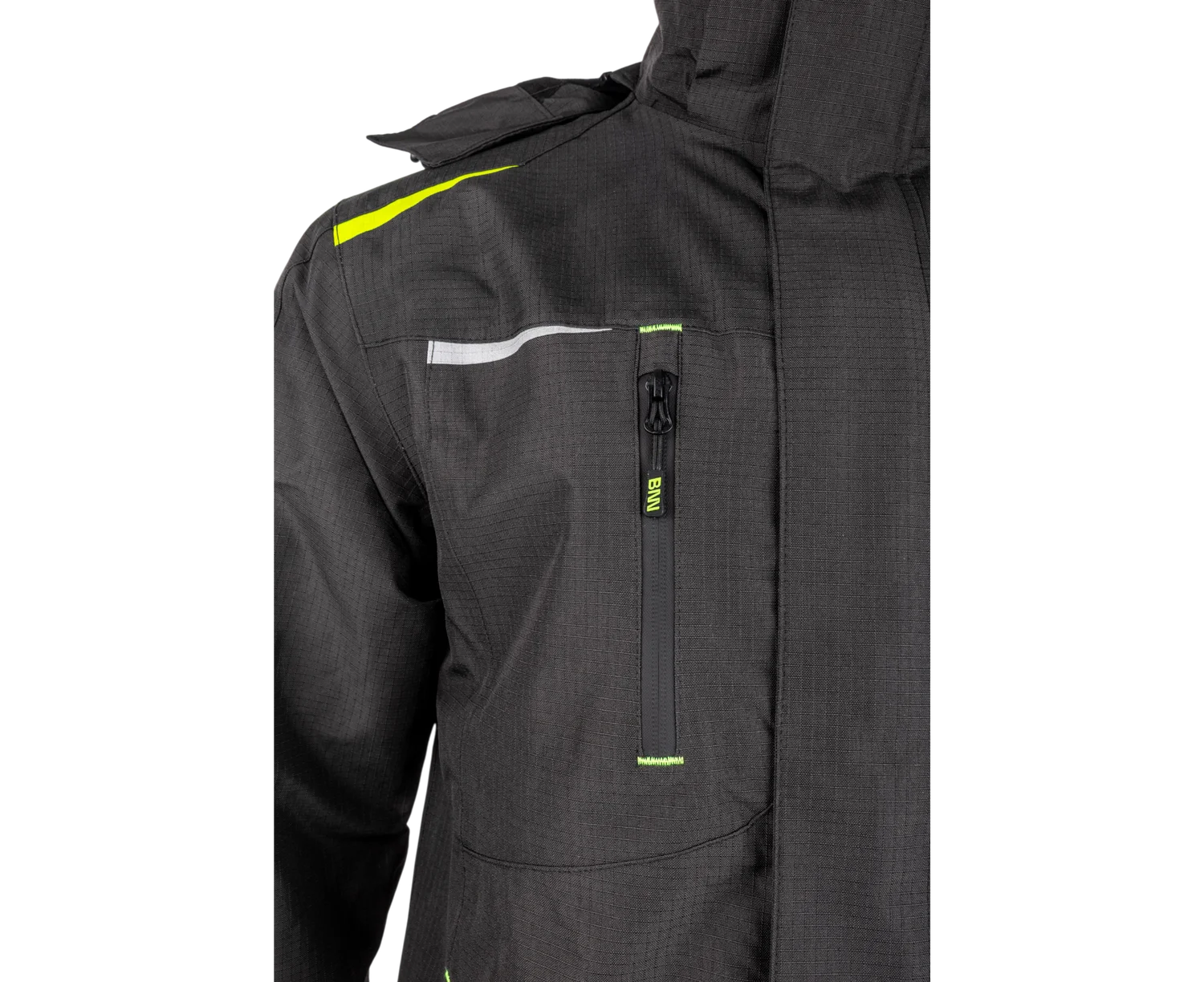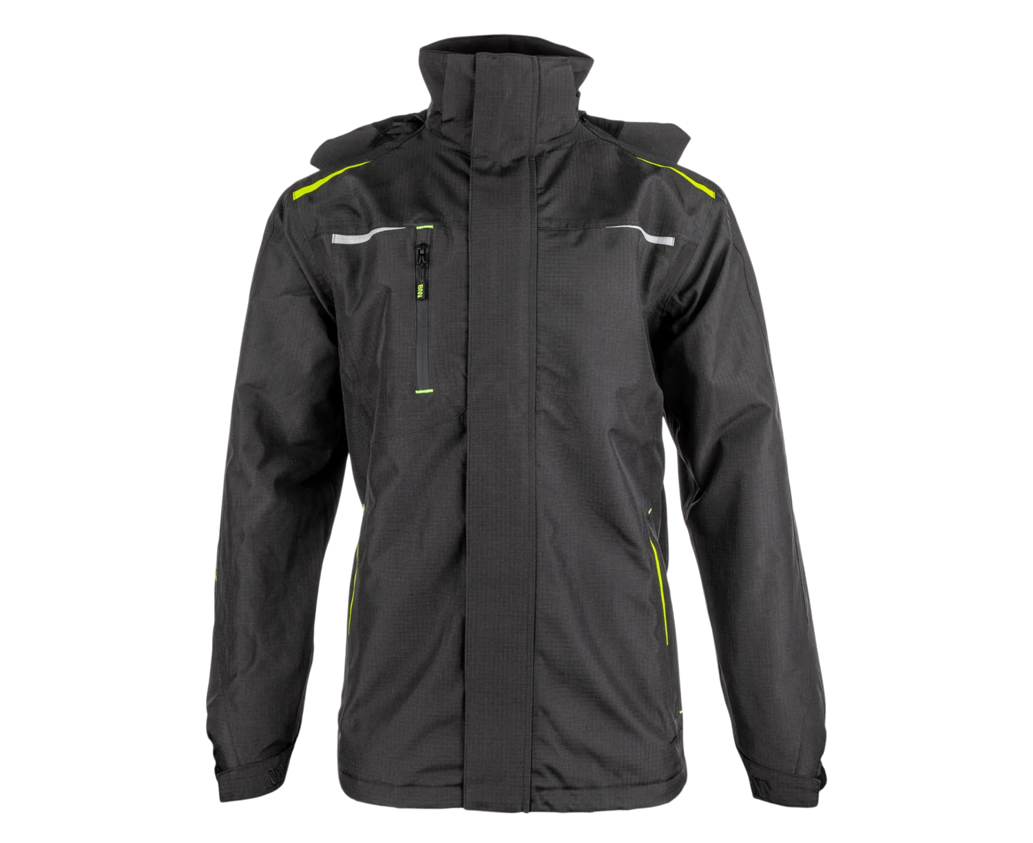Pre lepšiu bezpečnosť pri práci obsahuje bunda reflexné prvky na hrudi a chrbte, ktoré zlepšujú viditeľnosť v zhoršených svetelných podmienkach. Praktickosť zvyšuje odnímateľná a nastaviteľná kapucňa, ktorú je možné jednoducho zbaliť do goliera.